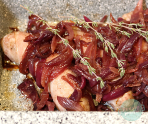 Przepis, który z powodzeniem można przygotować w nadchodzące Święta, jak i w zwykły dzień bez okazji. Biała kiełbasa owinięta plastrem boczku, zapiekana z karmelizowaną cebulą i aromatycznym tymiankiem na pewno znajdzie swoich amatorów. W swoim przepisie możecie użyć czerwonej cebuli, ale także ze zwykłą białą danie wyjdzie również bardzo smaczne. Pamiętajcie, aby użyć kiełbasy dobrej jakości z ulubionego lokalnego sklepu. Dobre produkty to więcej niż połowa kulinarnego sukcesu!♥️