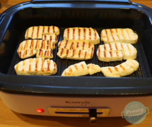 Ser halloumi wyjąć z opakowania, osuszyć ręcznikiem papierowym, pokroić na plastry grubości około 0,5 cm i delikatnie spryskać olejem. Grillować w wysokiej temperaturze. Gdy plastry sera zaczną się rumienić z obu stron, zdjąć i zostawić do ostygnięcia. Ja ser zgrillowałam na swoim ulubionym urządzeniu MultiGrillu Kuvings na płycie do grillowania.
