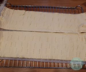 Wszystkie brzegi docisnąć widelcem robiąc wzór wokół. Odciśnięte wzorki posmarować roztrzepanym jajkiem.