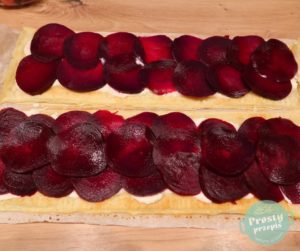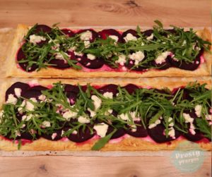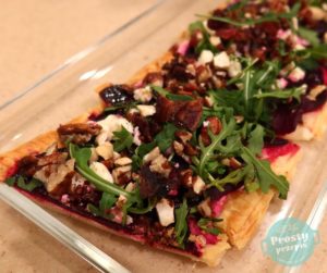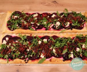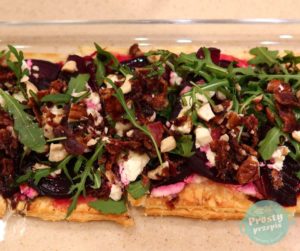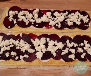Ciasto francuskie z burakami, serkiem i posypką orzechów