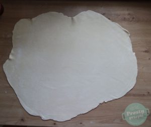 Ciasto rozwałkować na cienki placek (około 2 mm).