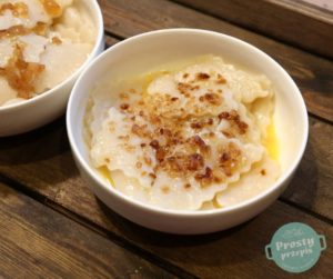 W wersji na słono polać skwarkami, w wersji na słodko wrzucić łyżkę masła i posypać cukrem, wymieszać.