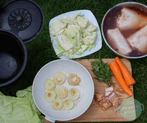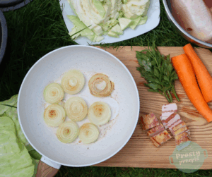 - pół główki świeżej kapusty + liście kapusty do wyłożenia kociołka