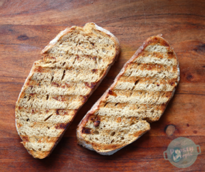 Chleb pokroić na kromki grubości do 1 cm. Spryskać oliwą i delikatnie zgrillować.