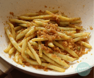Do usmażonej bułki z masłem dodać ugotowaną fasolkę. Delikatnie zamieszać, aby oblepiła się panierką.