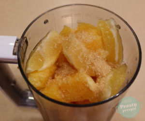 Cytryny i pomarańcze dokładnie wyszorować i sparzyć wrzątkiem. Obieraczką do warzyw obrać skórkę. Po obraniu odkroić białą warstwę. Obrane owoce pokroić na mniejsze kwaki, jeśli się pojawią w nich pestki to wyjąć. Pokrojone cytrusy oraz skórki wrzucić do blendera. Dodać obrany imbir i kurkumę (najlepiej używać rękawiczek, gdyż korzeń kurkumy strasznie farbuje ręce na żółto) też pokrojone na mniejsze kawałki oraz resztę składników: anyż, goździki, cukier i cynamon.