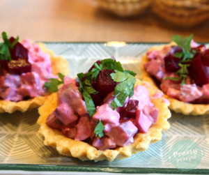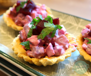 Kruche babeczki nadziewane śledziem i burakiem