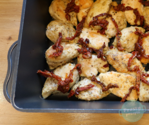 - 3 łyżki pociętych suszonych pomidorów z oleju (mogą być z dodatkami np. żurawiną, pestkami)