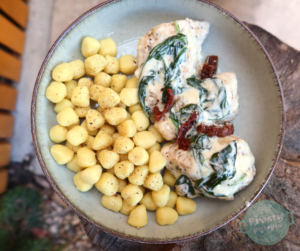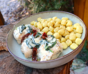 Kurczak po toskańsku podany z kuleczkami gnocchi