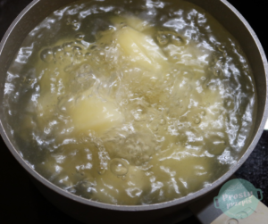 W trakcie gotowania mięsa możemy obrać ziemniaki. Mniejszej wielkości ziemniaki pokroić na cztery części i umieścić w osobnym garnku i ugotować do miękkości w osolonej wodzie. Ugotowane kawałki ziemniaków przełożyć do osobnego naczynia. Całej wody z gotowania ziemniaków nie wylewaj od razu – może się okazać, że zupa wyszła zbyt gęsta i wodą z ziemniaków rozrzedzisz kwaśnicę.
