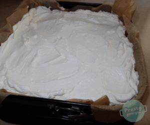 Kiedy galaretka stężeje wyłożyć ubity krem śmietanowy.