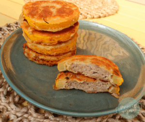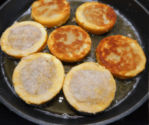 Smażyć na patelni w większej ilości rozgrzanego oleju na złoty kolor z obu stron. Moc palnika musi być średnia, aby mięso i cukinia mogły w środku się usmażyć.