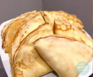 Ciasto naleśnikowe można zrobić w pierwszej kolejności. Masło roztopić. Do misy miksera wsypać mąkę, wlać mleko oraz cukier i sól. Całość dokładnie zmiksować na gładką masę. Na koniec wolnym strumieniem wlać roztopione masło i gorącą wodę chwilę miksować.