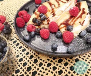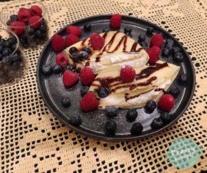 - DODATKOWO: sos czekoladowy, cukier puder, maliny, borówki lub inne ulubione owoce