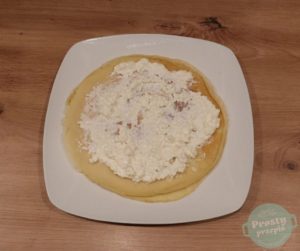 Ser rozgnieść widelcem, dodać cynamon i cukier – cukier można dozować według własnego gustu. Serek waniliowy dodawać stopniowo, aby farsz nie zrobił się zbyt rzadki – u mnie zwykle zostaje go trochę. Serek można zamienić na śmietanę 18%. Wszystko dokładnie zamieszać.