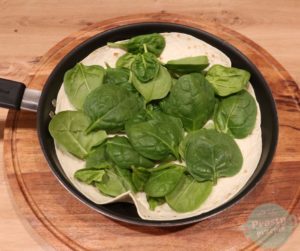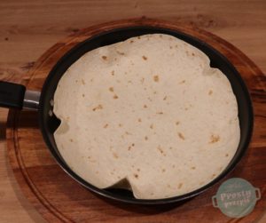 Rozgrzaną patelnię skropić olejem, położyć tortillę.