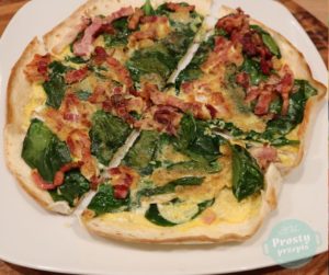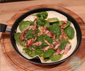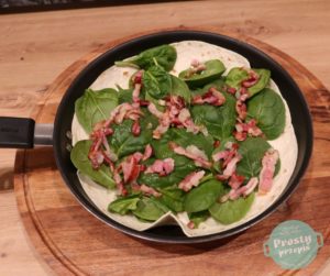 Omlet na tortilli ze szpinakiem i boczkiem