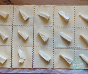 Na każdy plaster ciasta położyć ½ trójkąta serowego.