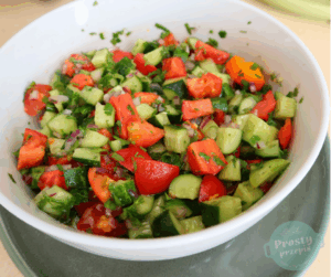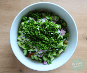 Sałatka z pomidorem, ogórkiem i dużą ilością zielonej pietruszki