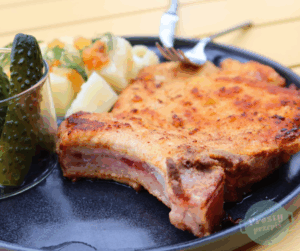 - 5 plastrów schabu z kością (grubość około 1,5 cm)