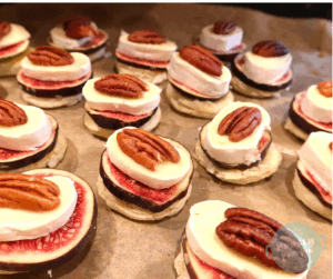 Na upieczone krążki ciasta układać kolejno: figę, ser i orzech.