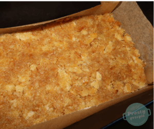 Masło roztopić, dodać pokruszone krakersy oraz cukier.