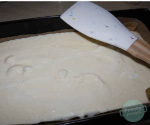 Wszystkie składniki wymieszać i wyłożyć na spód dużej blachy – docisnąć.