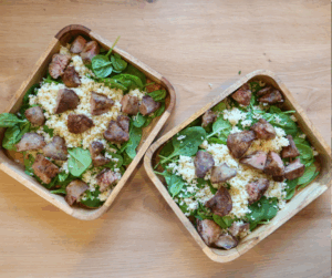 Pokrojoną wątróbkę rozłożyć na szpinaku i kaszy.