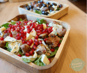 Dodać pokrojone połówki winogron lub ziarna granatu – u mnie dzisiaj w obu wersjach, obie fantastyczne.