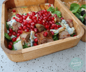 Szpinak z wątróbką, serem pleśniowym i winogronem
