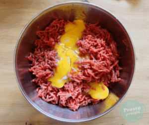 Wszystkie składniki mieszać ręcznie do momentu, aż mięso będzie odchodzić od ściany miski i zacznie tworzyć jednolitą masę.