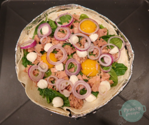 Ważną kwestią jest naczynie w którym będziemy robić zapiekankę, musi być mniejsze o około 2 cm od tortilli, aby można było zagiąć brzegi, które nie pozwolą wypłynąć jajom.