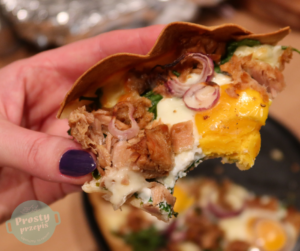 Tortilla zapiekana ze szpinakiem, jajkiem i tuńczykiem