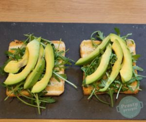 Awokado obrać ze skórki i wyjąć pestkę, pokroić w plasterki. Można je również rozsmarować lub zrobić guacamole: https://prostyprzepis.blog/przepis/guacamole-2/
