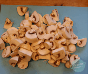 Cebulę pokroić w kostkę, przesmażyć na oleju, następnie dodać marchewkę i pieczarki pokrojone w cienkie plasterki.