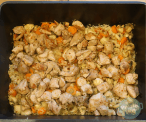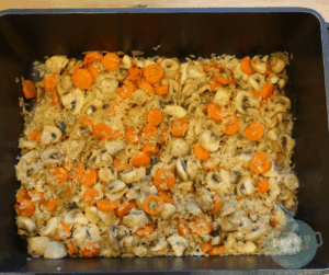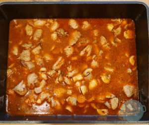 Piec 1 godzinę w temperaturze 200°C pod przykryciem (danie w międzyczasie można zamieszać).