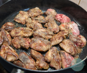 Smażyć cały czas na małym ogniu, w razie potrzeby dodać trochę oliwy lub masła. Wątróbki nie mieszać, tylko każdy kawałek osobno przewracać na drugą stronę. Pozwolić, aby każdy kawałek ładnie się zarumienił.