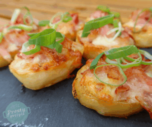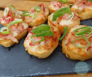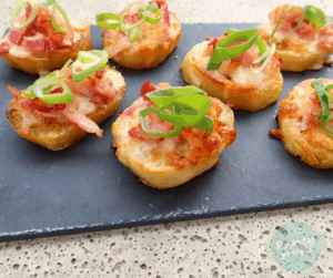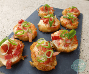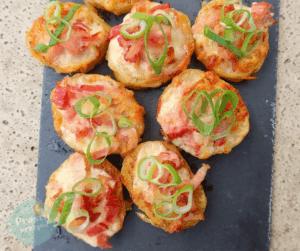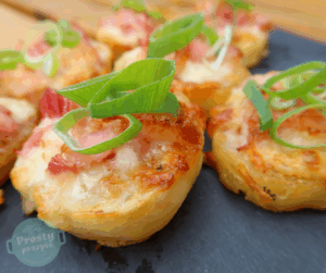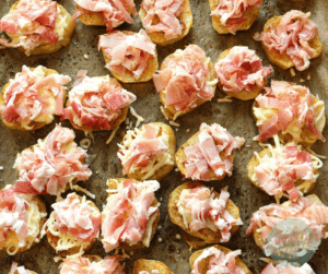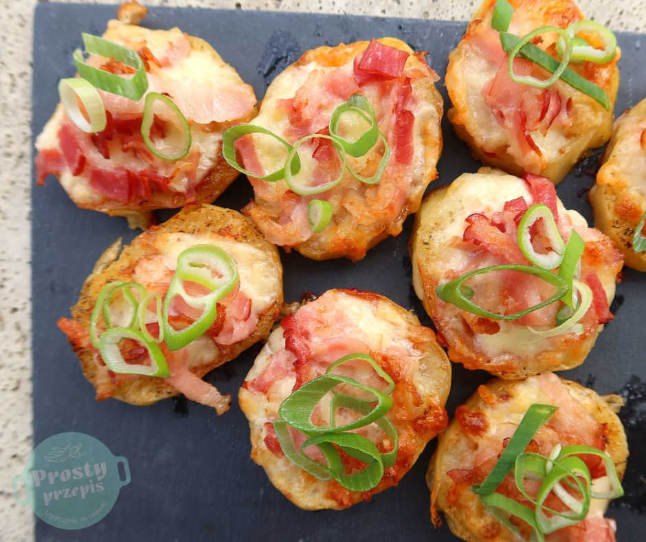 Piec w temperaturze 200ºC przez około 15-20 minut. Po tym czasie ser się roztopi, a boczek upraży.