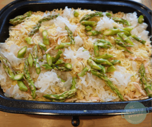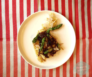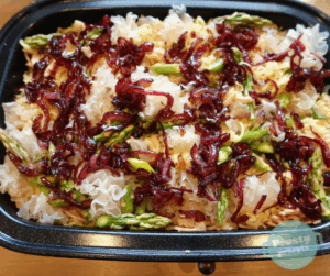 Zapiekanka makaronowa ze szparagami i karmelizowaną cebulą