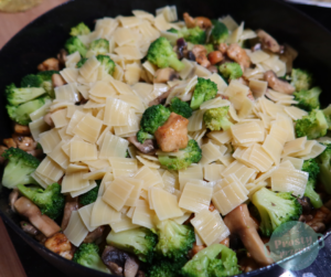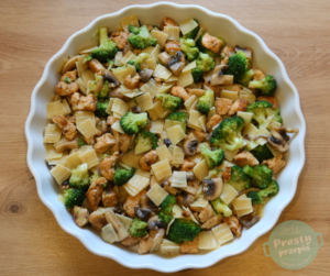 Zapiekanka z łazankami, kurczakiem i brokułem