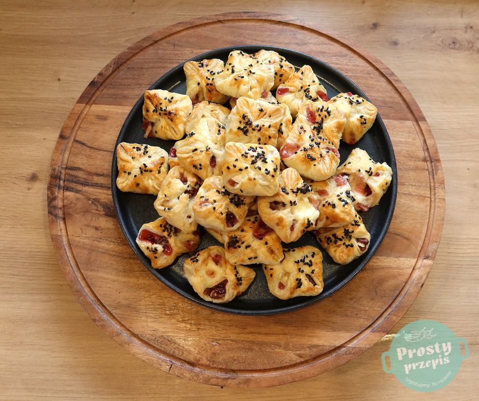 Niewielkich rozmiarów bułeczki z ciasta francuskiego są niezwykle delikatne w smaku, a nadzienie w postaci serka śmietankowego z dodatkiem łososia sałatkowego jest znane i lubiane przez wiele osób. Można urozmaicić smak przystawki posypką z czarnuszki lub czarnego sezamu ewentualnie podając je z ulubionym sosem np. czosnkowym lub tysiąca wysp.