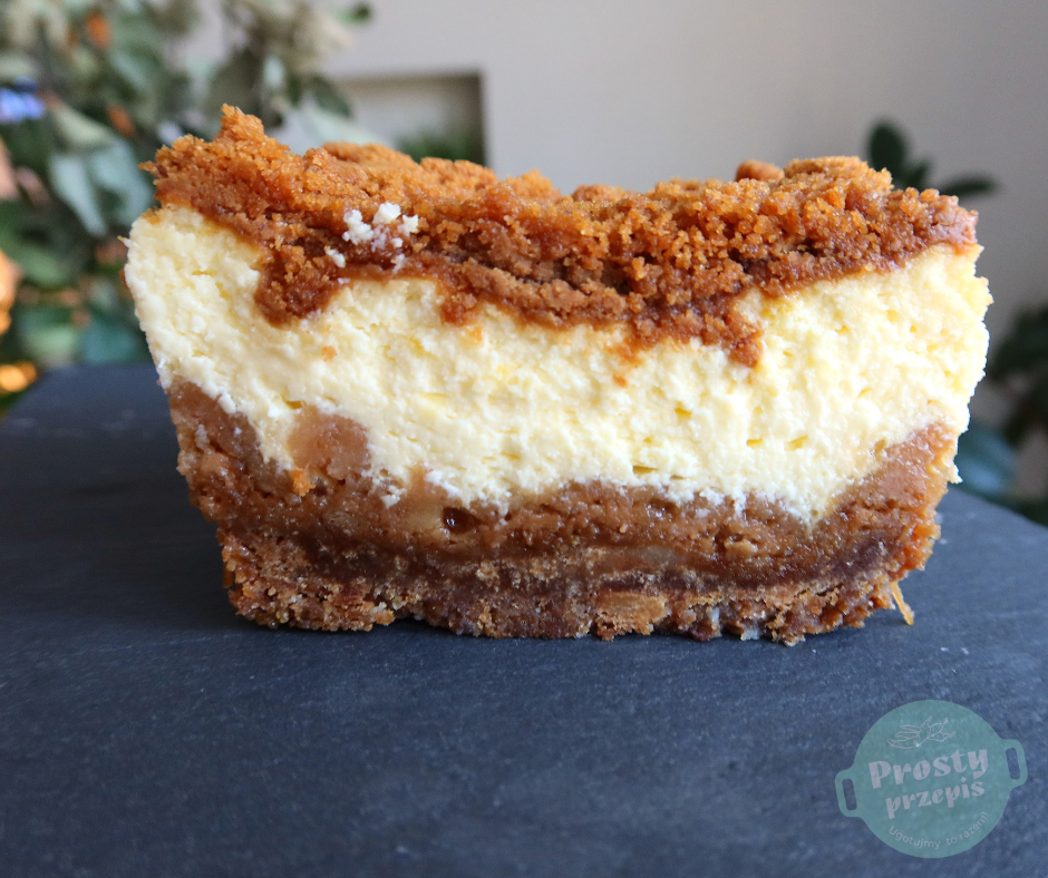 Ten sernik to prawdziwa gratka dla miłośników smaku Lotus Biscoff. Korzenne ciasteczka posłużyły mi do przygotowania aromatycznego, chrupiącego spodu, a także jako pyszna posypka na wierzchu deseru. Do masy serowej już nie dodawałam kremu, bo uważam, że spód i wierzch wystarczająco dominują tym smakiem. Sernik wyszedł wyjątkowo kremowy, o intensywnym karmelowo-korzennym charakterze. To jeden z tych rodzajów serników, do którego wracam najczęściej i który znika najszybciej!