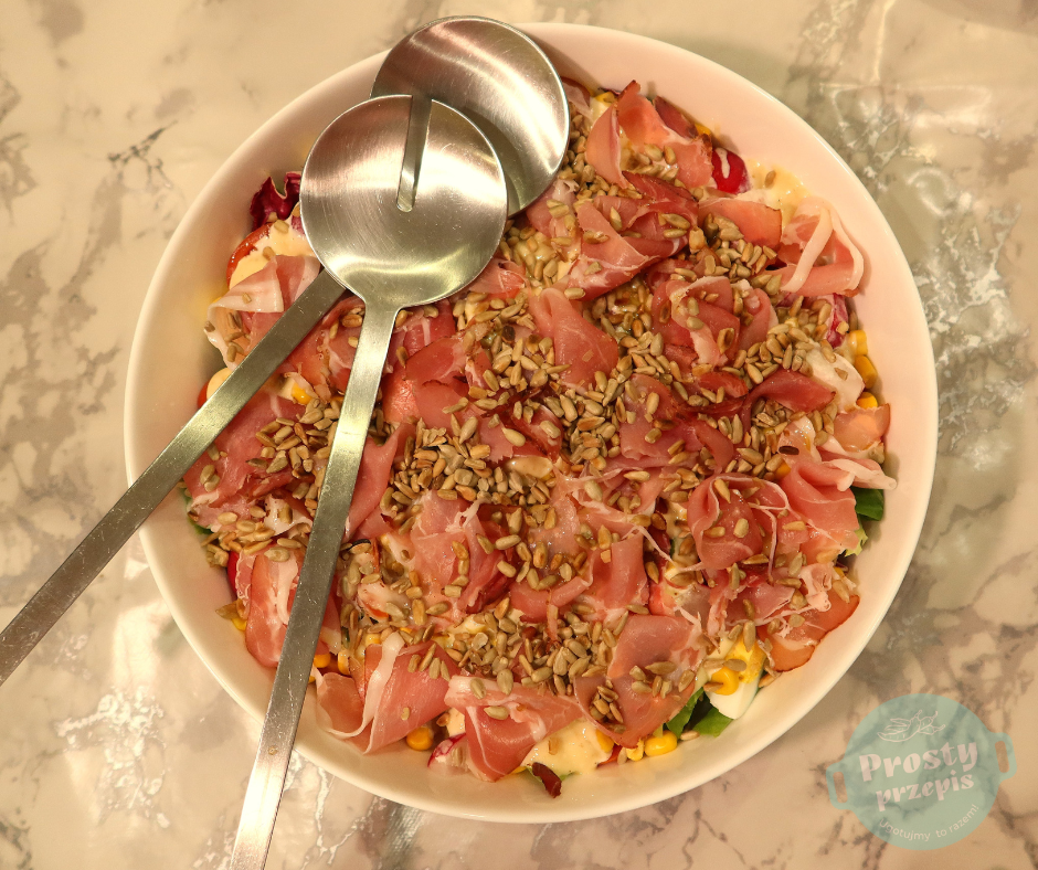 🌿🍽️ Dziś w roli głównej — superlekka sałatka pełna kolorów i smaku! Miks sałat, chrupiące rzodkiewki, soczyste pomidorki, kukurydza, jajka i szynka szwarcwaldzka, która obłędnie pachnie. Sałatka lekka, szybka i pełna świeżości — ale ma też niebezpieczne właściwości… znika w ekspresowym tempie. Zróbcie sobie dzisiaj taką przyjemność 💚🥗🥗
