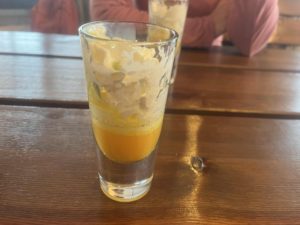 Zwieńczeniem na stoku i namiastką włoskich smaków było rozgrzewające Bombardino (włoski drink serwowany na gorąco, szczególnie właśnie w kurortach narciarskich, klasyczna wersja to połączenie podgrzanego likieru jajecznego (Advocaat lub włoski Vov) z brandy, rumem lub whisky (proporcje 1:1), a całość dopełniona bitą śmietaną.