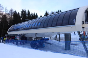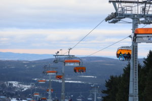 Spędziliśmy tu 6 dni, testując różne warunki i trasy, od łatwych niebieskich po czerwone. Stoki są szerokie i zróżnicowane, a w sumie działa tu 24 wyciągów: orczyki, krzesełka 4- i 6-osobowe, w tym podgrzewane kanapy. Kursuje też tu kolej linowa Nartorama Skyway Express z jedną gondolą – wagonikiem, która jest dostępna dla narciarzy, snowboardzistów oraz turystów pieszych zimą i rowerzystów oraz wielbicieli wędrówek pieszych w okresie letnim. Jedne trasy łączą się ze sobą, inne niekoniecznie. Są krótsze i dłuższe. Ogólnie jest ich aż 40! Jedna prowadzi nawet koło granicy polsko-czeskiej, przy której znajduje się czeskie schronisko – Masarykova Chata, więc gdy opadniemy z sił możemy wpaść po Studencką i na czeskiego grzańca. Długość najdłuższej trasy zjazdowej to 3 km, w sumie łączna długość wszystkich tras to 21 km.