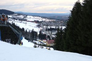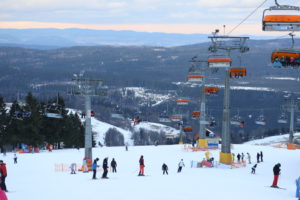 Spędziliśmy tu 6 dni, testując różne warunki i trasy, od łatwych niebieskich po czerwone. Stoki są szerokie i zróżnicowane, a w sumie działa tu 24 wyciągów: orczyki, krzesełka 4- i 6-osobowe, w tym podgrzewane kanapy. Kursuje też tu kolej linowa Nartorama Skyway Express z jedną gondolą – wagonikiem, która jest dostępna dla narciarzy, snowboardzistów oraz turystów pieszych zimą i rowerzystów oraz wielbicieli wędrówek pieszych w okresie letnim. Jedne trasy łączą się ze sobą, inne niekoniecznie. Są krótsze i dłuższe. Ogólnie jest ich aż 40! Jedna prowadzi nawet koło granicy polsko-czeskiej, przy której znajduje się czeskie schronisko – Masarykova Chata, więc gdy opadniemy z sił możemy wpaść po Studencką i na czeskiego grzańca. Długość najdłuższej trasy zjazdowej to 3 km, w sumie łączna długość wszystkich tras to 21 km.